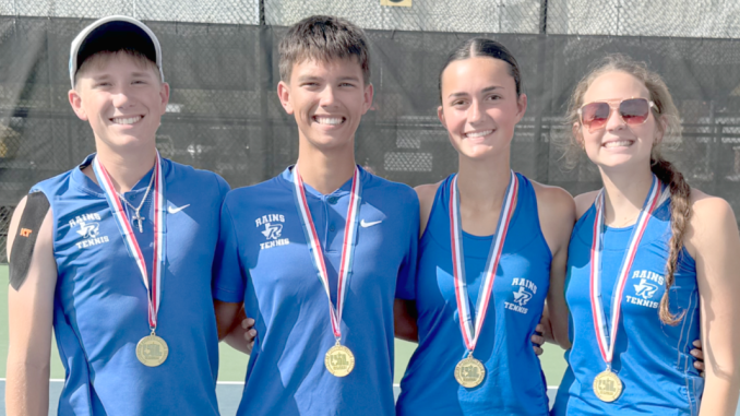 The Wildcat doubles team of Blanton Mayes and Keegan Wray and the Lady Cat doubles team of Alli Wallace and Kenzy Thompson won the Region 2-3A tennis tournament at Tyler Junior College.
