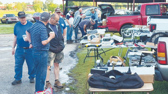 Radio enthusiasts inspect vendors’ wares early Saturday morning, April 25, during the Rains Amateur Radio Association’s Tailgate Hamfest held at the Rains County Fairgrounds in Emory.